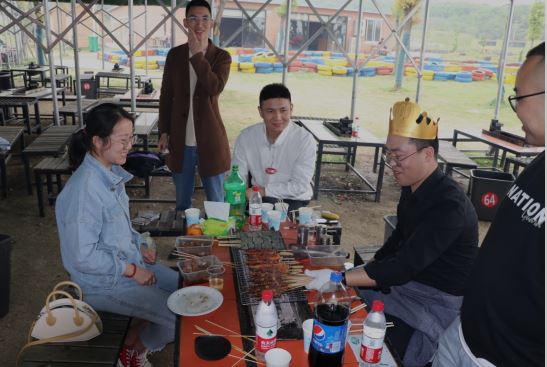 中午時分,我們轉戰(zhàn)燒烤區(qū)域,還沒等火生好,小伙伴就已經按耐不住了,早早的圍在桌邊等待燒烤。公司還為四月份過生日的同事準備了生日驚喜,全場唱起生日歌,一起切蛋糕正式開始我們的燒烤之旅。