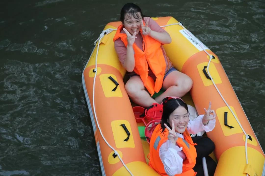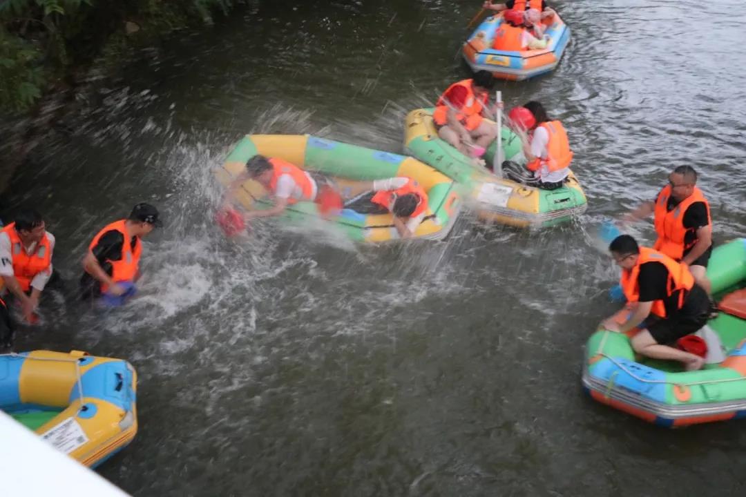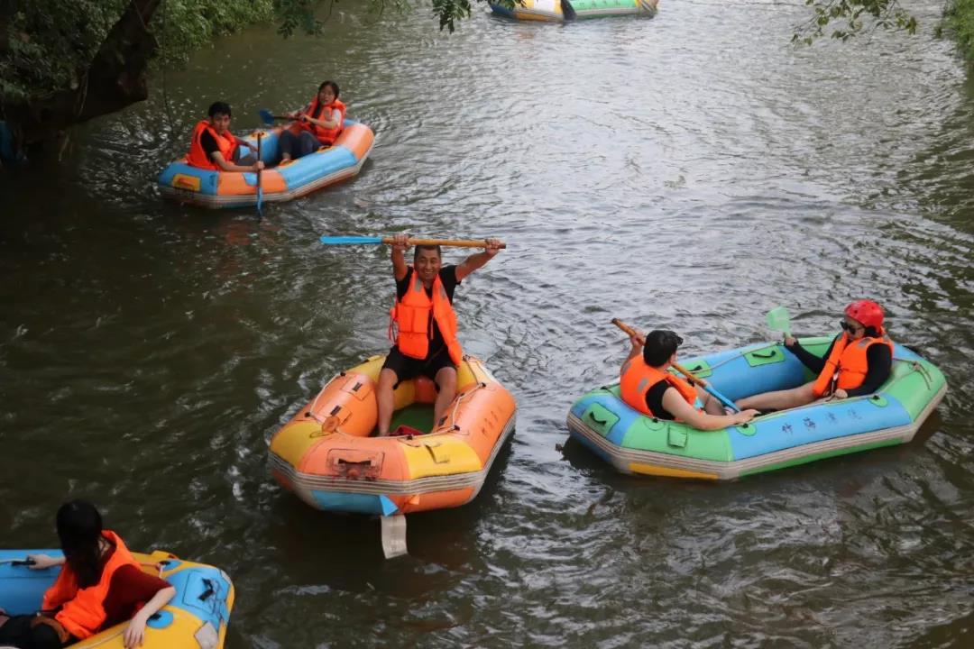 下午全體員工領(lǐng)好安全帽和救生衣,拿好船槳開始了竹海漂流活動,在時而湍急時而平緩的水流中漂流艇順流而下,同事們打起水戰(zhàn),在驚險刺激的漂流中品味著江南小村莊的韻味,感受到了更多的刺激和歡樂。